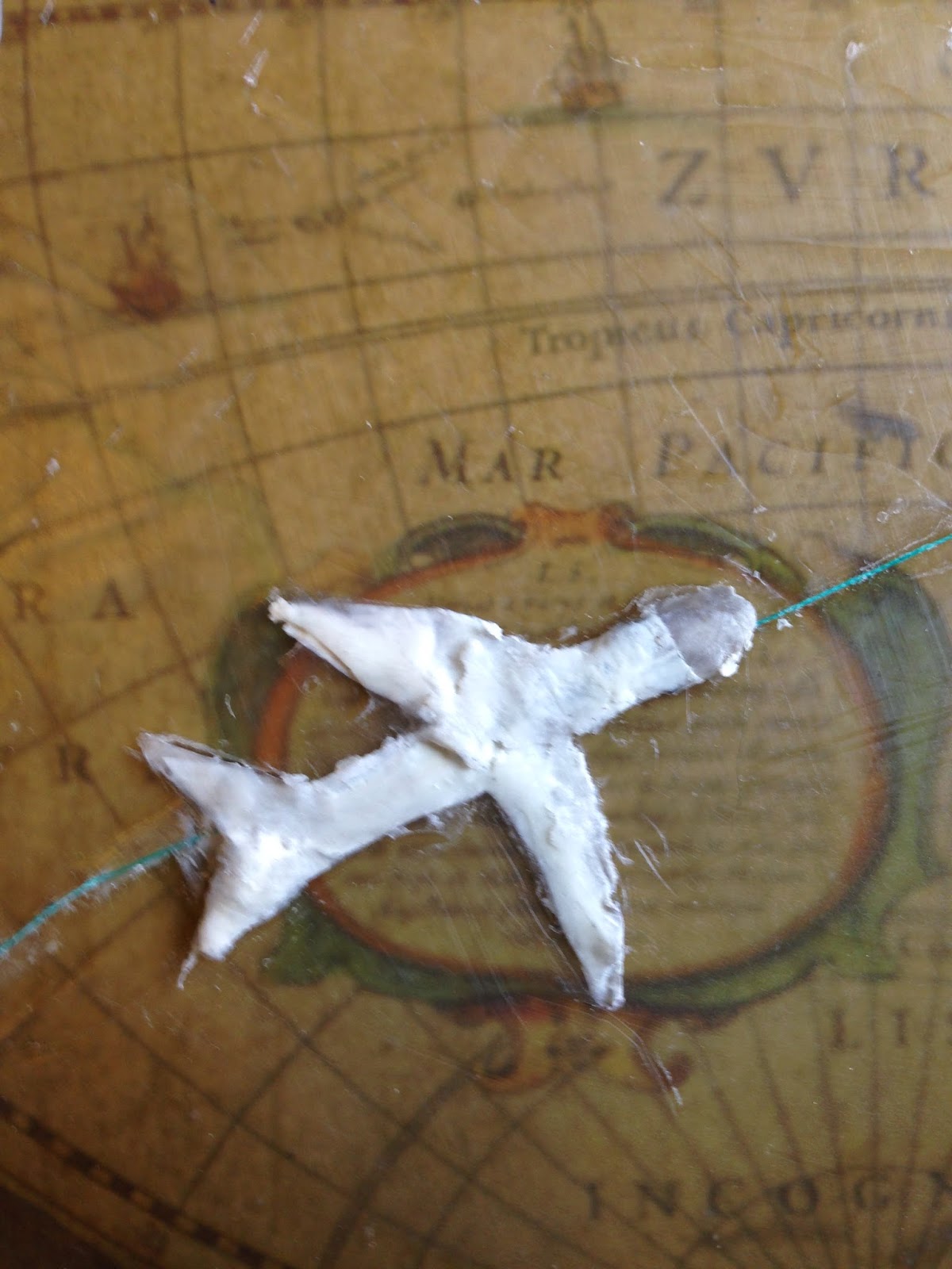 The planes were drawn on white tissue paper then dipped in clear wax to collage into the piece.
